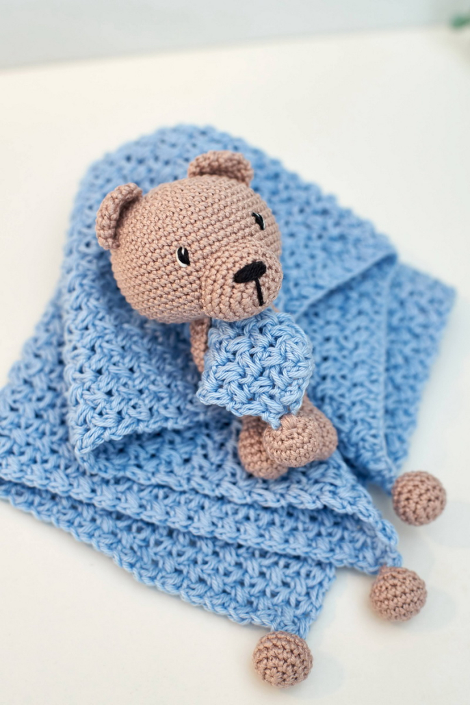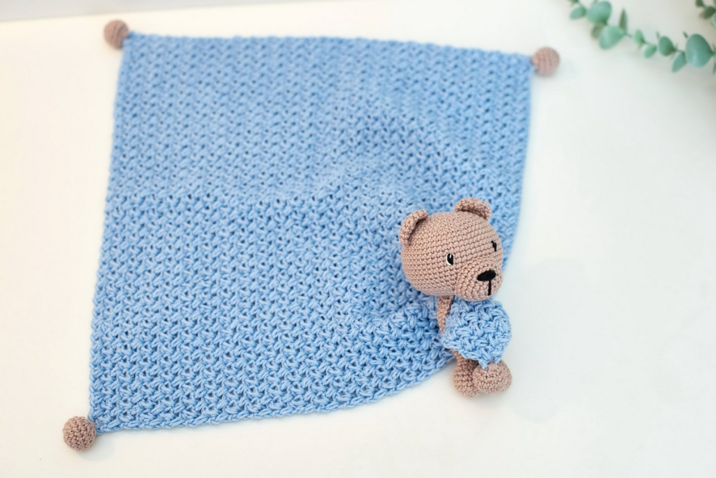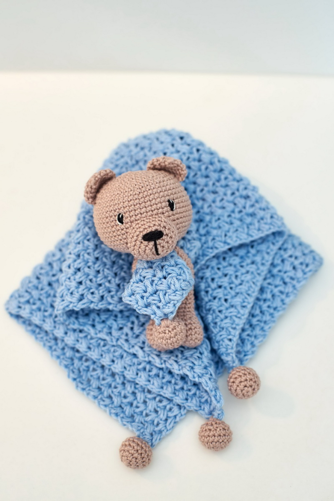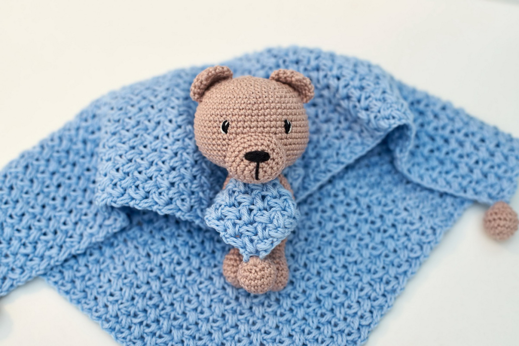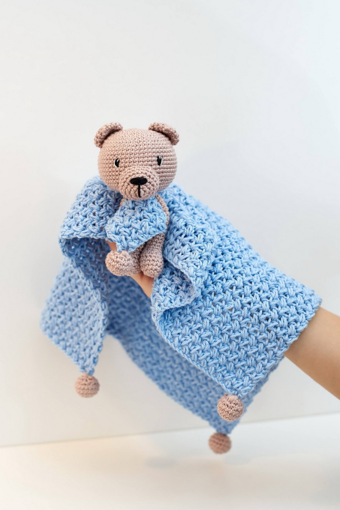 Ez a kézzel horgolt, egyedi mackós szundikendő igazi szeretettel készült kincs, amely megnyugtatja és biztonságérzetet ad a legkisebbeknek.