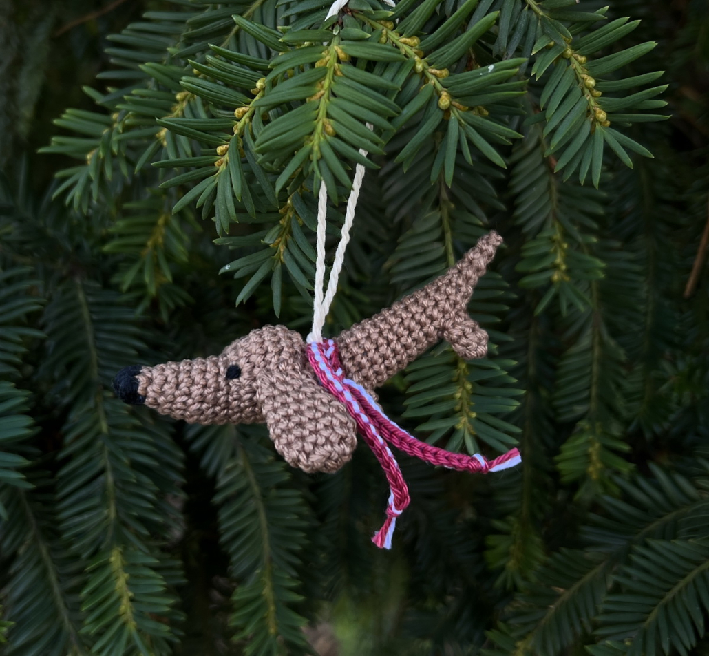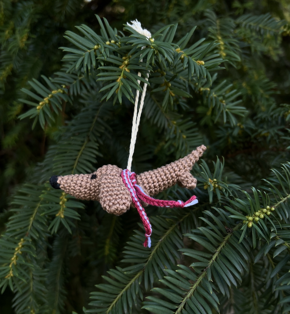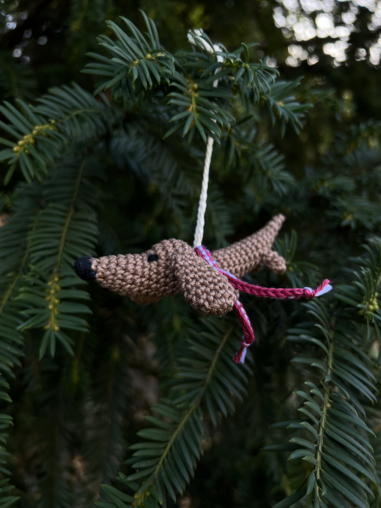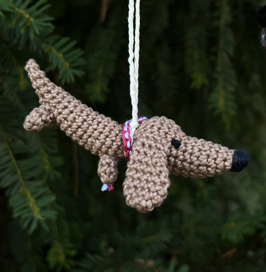 Ez a horgolt tacskó nemcsak a karácsonyfád dísze lehet, hanem akár kulcstartóként is veled tarthat minden nap — csak kérd kulcstartó szerelékkel, és máris magaddal viheted a kis kedvencedet.