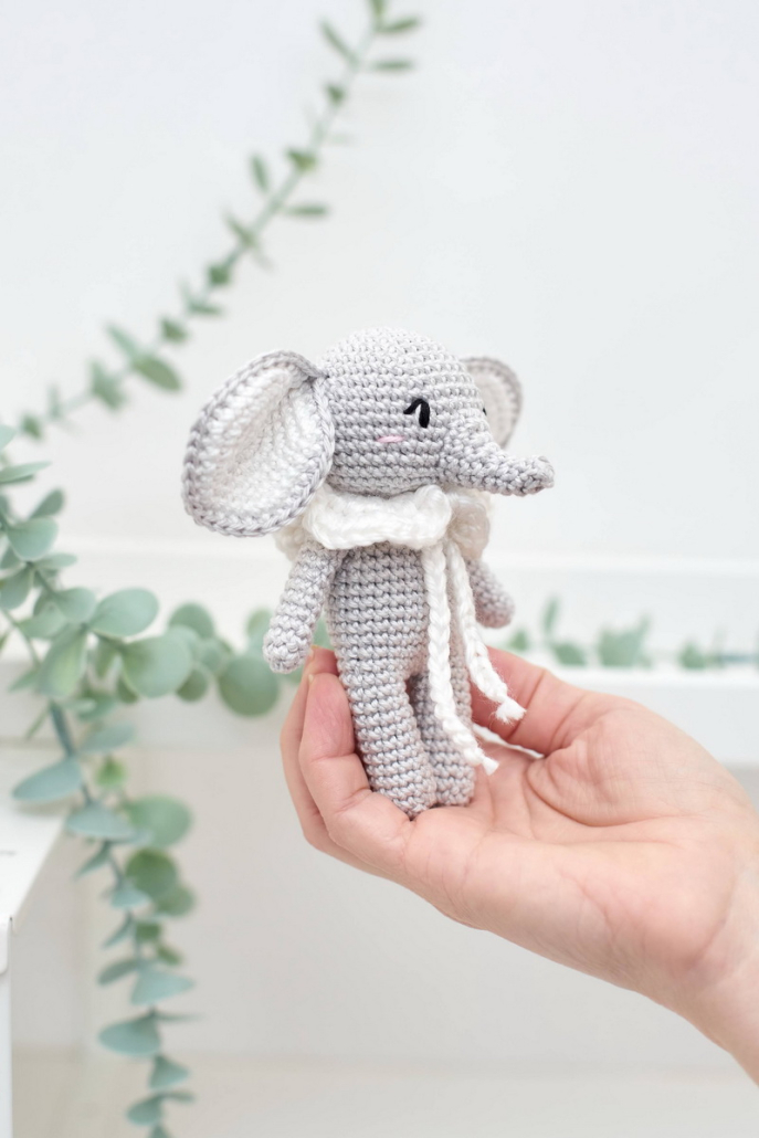 Ez a 12 cm magas horgolt elefánt marokfigura tökéletes társ a babák első kalandjaihoz – puha, könnyen megfogható, és biztonságos minden öleléshez. Bababarát, minőségi pamutfonalból készült, a részleteket pedig hímzéssel alakítottuk ki, így semmilyen apró, lenyelhető elem nem található rajta.